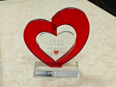 2025年4月3日,在广东省中山市石岐街道仙湖社区党群服务中心内暖意融融。辖区某小学学生小浩(化名)双手捧着一个晶莹剔透的水晶爱心杯,感谢政府和社区对他的帮助和关怀。杯身镌刻的"真情 热心 用心 耐心,为民服务点赞" 十六个鎏金大字,在春日阳光的照耀下折射出温暖的光芒,这是少年定制的特殊礼物。