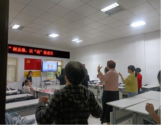 活动伊始,来自志愿队的队员担任主讲人,用生动有趣的方式为现场人员讲述劳动节的由来。现场,志愿者与孩子们围坐在一起,亲切地分享日常生活中警察、医生、农民等常见职业的故事。在交流中,大家对每一位普通劳动者都致以崇高敬意,明白了要尊重劳动成果、尊重身边的每一位劳动者。随后,还开展节前全民健身促健康跳操活动,在社区工作人员的带领下,居民跟着欢快的音乐声一起跳动,大家健身操跳的步伐整齐、节拍准确、动作有力,跟随着荧幕上洪亮的口号声,沉浸在欢乐的跳操氛围中,充分展现了健身的活力与精神。