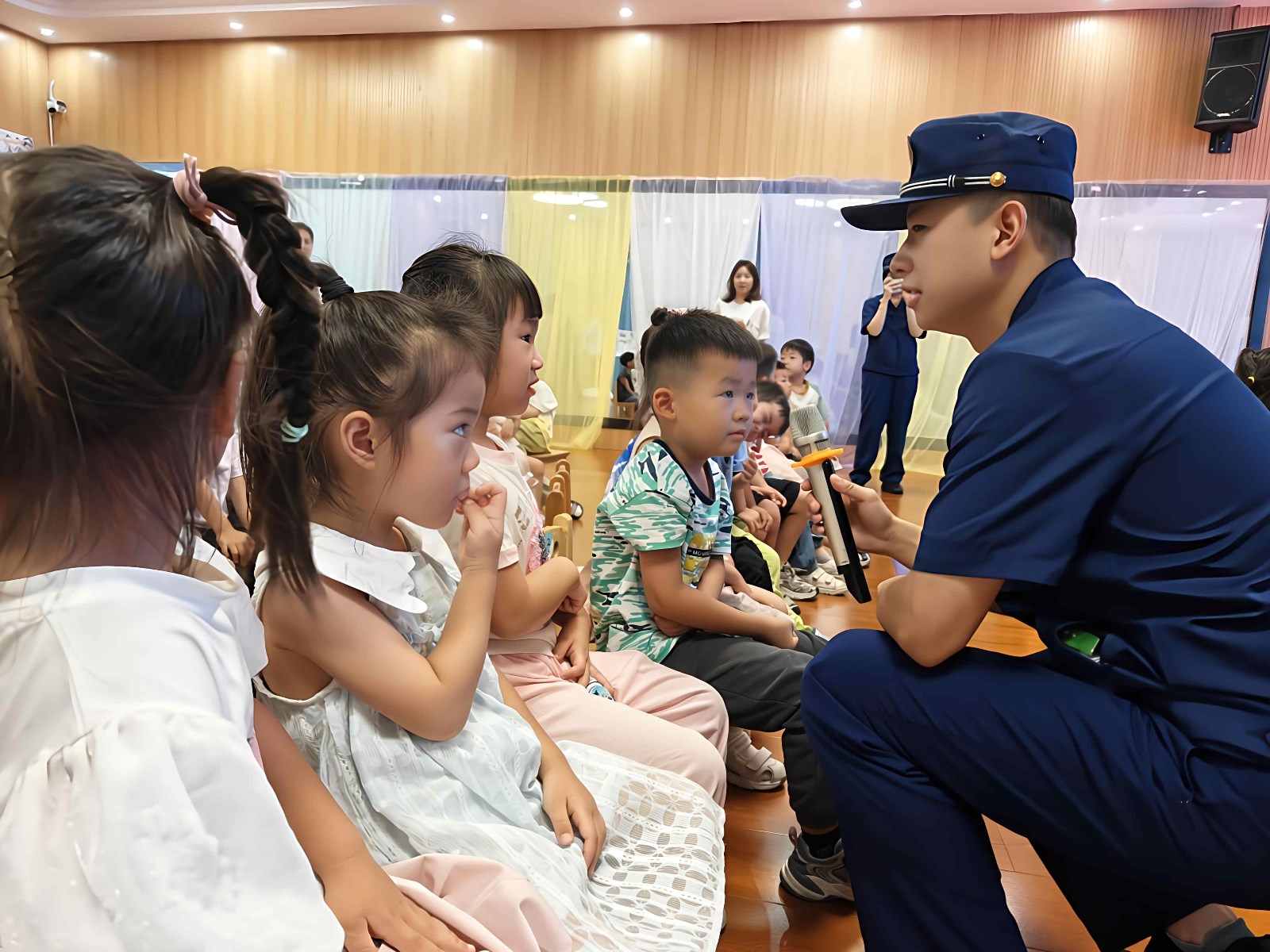 活动首站走进辖区美亚幼儿园,应急救护讲师化身 “安全卫士”,通过播放生动有趣的动画片、分享真实案例,结合趣味问答等互动形式,为孩子们上了一堂别开生面的防溺水安全教育课,教会他们溺水时的自救方法与互救要点。袁河消防队员则用童趣化的语言,将火灾预防、逃生技巧等知识娓娓道来,让孩子们在轻松愉快的氛围中掌握消防安全知识。社区工作人员针对暑假安全风险,以讲故事的方式叮嘱孩子们远离危险,让安全意识深植童心。讲座后,社区又组织辖区物业、超市、新开业商户、网格员等开展专项消防培训。消防队员围绕消防设施操作、火灾应急处置流程等内容,进行手把手实操教学。