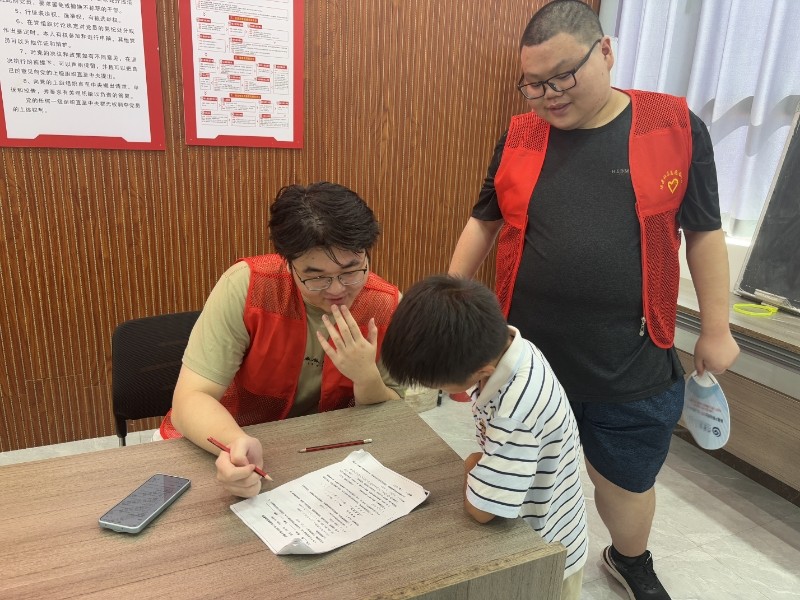 本次暑期托管班采用“基础托管+特色课程”的模式,社区充分整合资源,联合辖区教育机构开展公益托管班,招募辖区大学生志愿者提供课业辅导与答疑解惑,培养良好的学习习惯。
