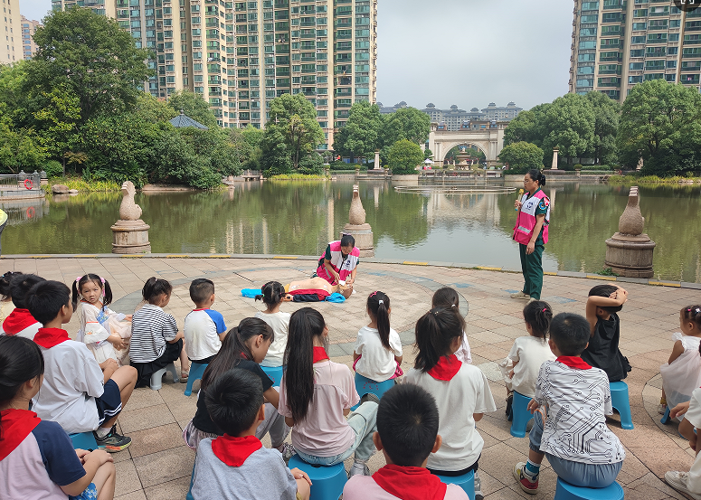 为切实增强社区居民及青少年儿童的安全防范意识,提升应对溺水事故的应急处置能力,9月19日上午,袁河街道恒大社区关工委联合公安、消防、急救等部门,在辖区恒大城小区人工湖开展了“珍爱生命,远离危险水域”防溺水救援演练活动。此次活动吸引了社区居民、物业工作人员及学校师生代表前来参与,通过理论讲解与实战演练相结合的方式,为大家带来了一场生动的安全知识“盛宴”,脚踏实地上好了开学安全第一课。