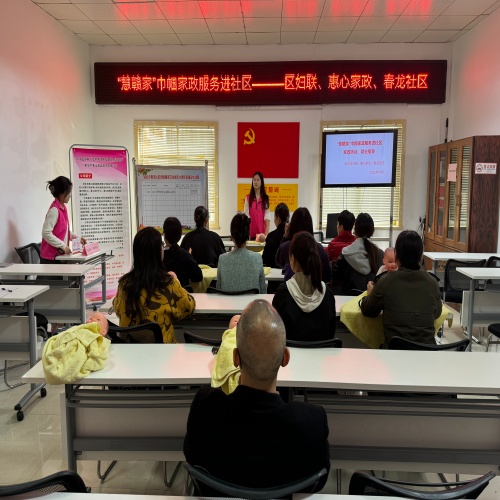 为切实解决居民日常生活需求,提升辖区妇女家政服务能力,帮助居民掌握更多实用生活技能。11月12日上午,江西省新余市渝水区城北街道春龙社区关工委联合区妇联、惠心家政开展“家政服务进社区”公益活动。活动现场,惠心家政讲师手持仿真婴儿模型,一边演示一边讲解婴儿抚触的关键要点,让每一位参加的居民实操演练,针对动作误区逐一纠正。除了育儿技能教学,此外,现场还安排了专业人员提供就业指导,为有家政服务需求的居民和家庭服务员搭建了对接平台,既解决了居民的实际需求,又为家政从业人员提供了就业机会。
