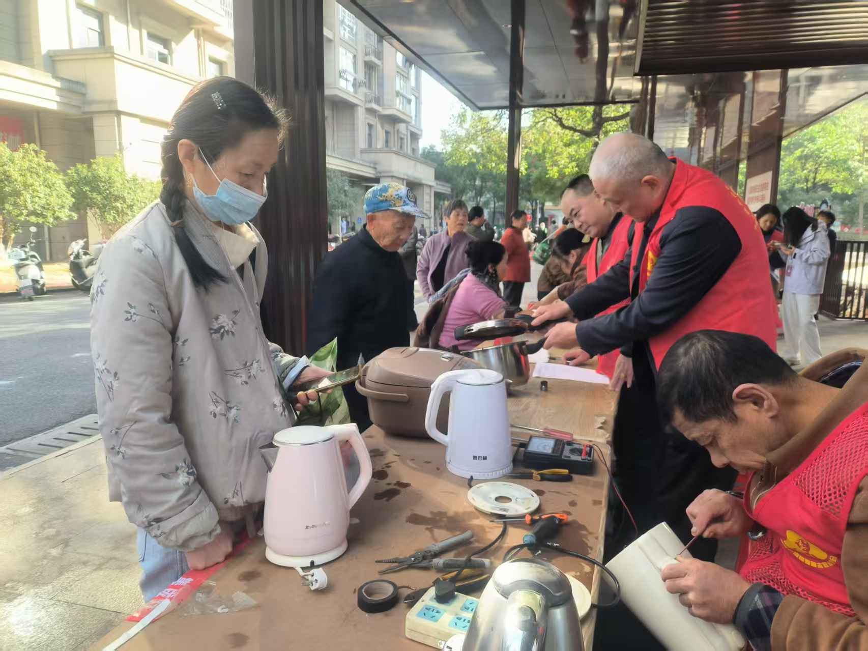活动现场,志愿者们分工明确、热情服务:理发区有序为老年居民修剪发型,满足日常仪容需求;健康服务区内,血压测量与义诊咨询同步开展,医护志愿者耐心解答健康疑问;家电维修区、磨刀区前居民有序排队,志愿者们细致检修各类小家电、打磨刀具,解决生活小难题;修剪指甲、按摩等服务则重点关注老年群体,用贴心举措传递温暖。