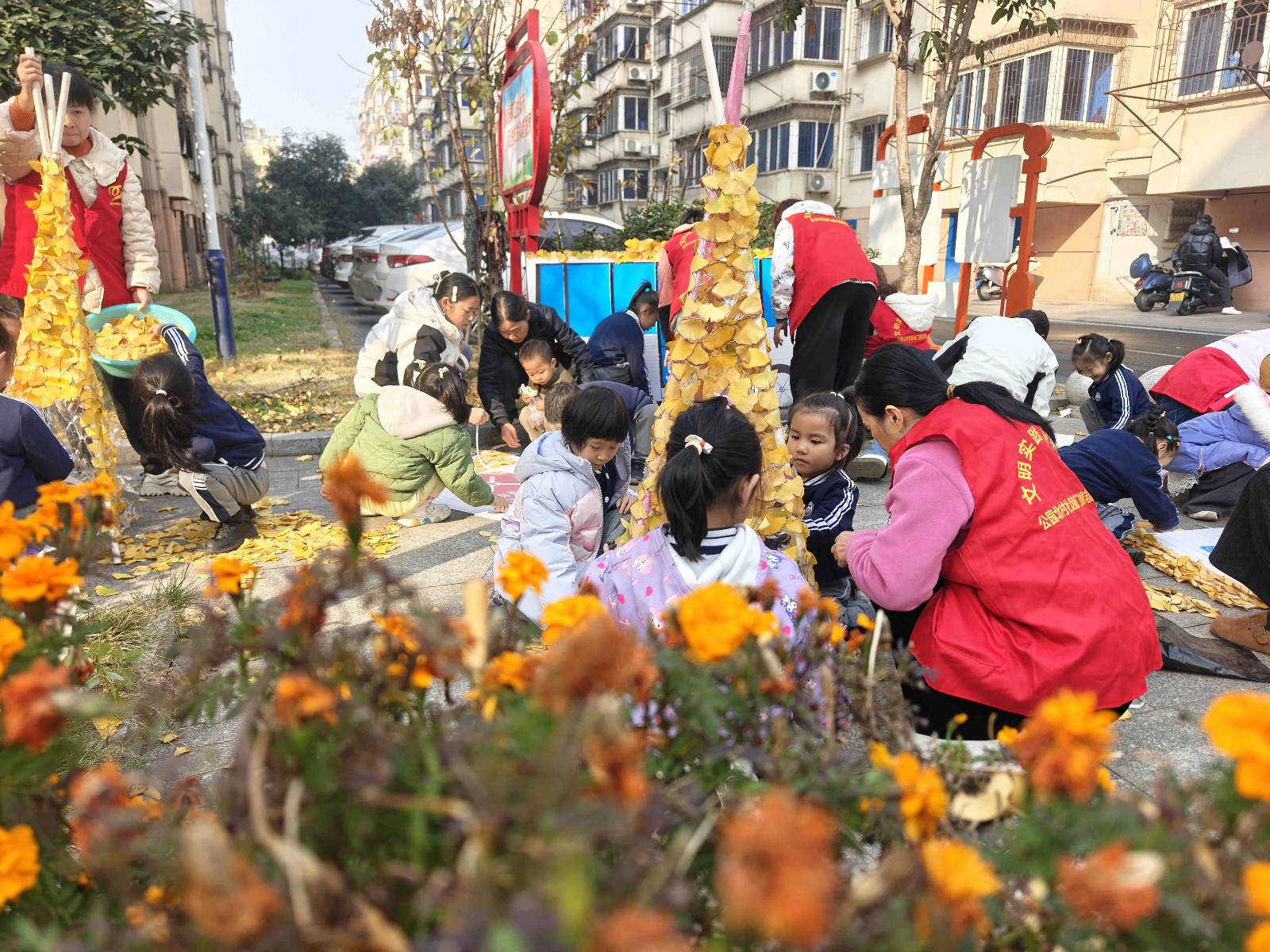 为进一步丰富加深广大少年儿童对文明城市工作的理解,用自己的方式为文明新余添彩,12月18日,江西省新余市渝水区新钢街道公园北村社区关工委联合渝水四小附属美亚幼儿园开展“‘杏’好有你,文明添彩” 创文宣传创意实践活动,小朋友们化身 “文明小使者”,用捡拾的银杏落叶装点手工模型,以童真创意为创建文明城市注入温暖力量。活动现场,小朋友们在老师和“敲门嫂”志愿者的带领下,在福园小区小心翼翼捡拾金黄的银杏落叶,感受自然之美。随后的手工创作环节,孩子们将形态各异的银杏叶当作 “文明画笔”,精心拼贴在分类垃圾桶、公交车等手工模型上,将普通的落叶变成了承载文明的创意作品,童趣盎然又意义十足。