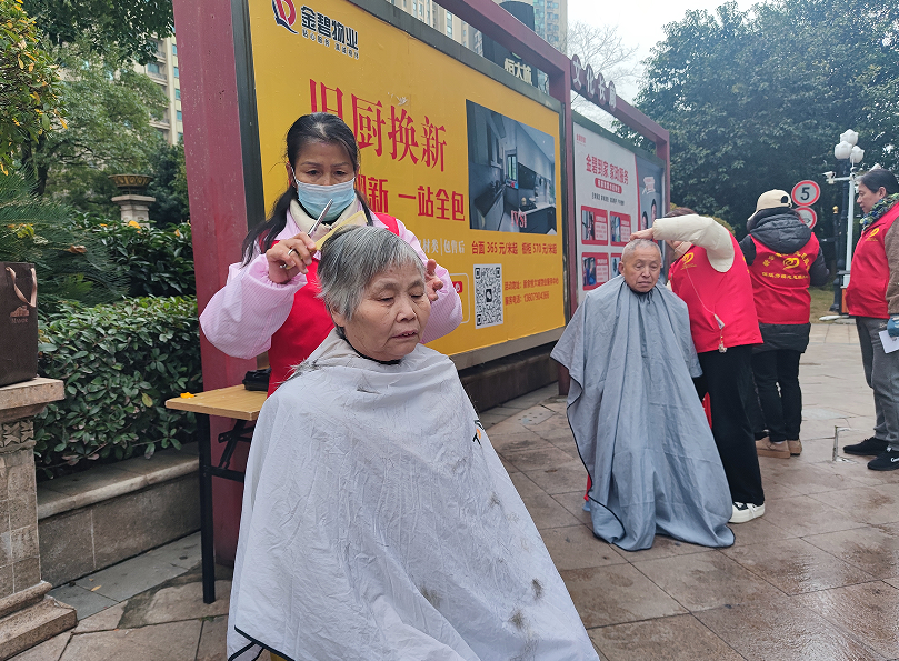 在爱心义剪区,同样是一片温馨忙碌的景象。理发志愿者们耐心地询问老人们喜欢的发型,手中的剪刀上下翻飞,一个个清爽利落的发型便应运而生。对于行动不便的高龄老人,志愿者还提供上门服务,让他们在家中也能享受到“私人订制”的理发体验。