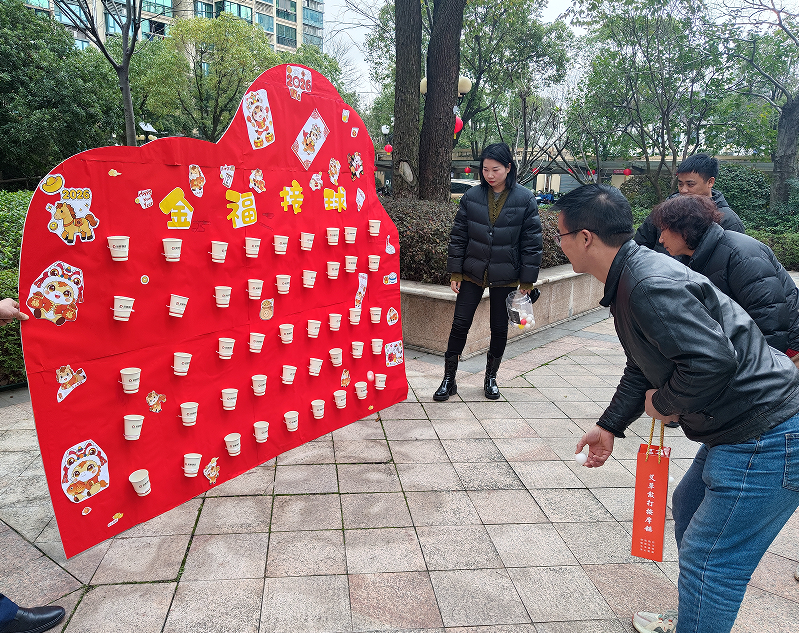 为了增加活动的趣味性,还精心准备了丰富多彩的趣味游戏。在“夹汤圆”比赛中,参赛选手们屏气凝神,手持长筷,小心翼翼地夹取乒乓球,旁边观众的加油声此起彼伏;在“金福接球”和“抖元宵”游戏中,居民们各显身手,现场喝彩声、欢笑声不绝于耳。这些简单而有趣的小游戏,让居民们放下了平日的忙碌,在互动中拉近了彼此的距离,现场一片其乐融融的景象。