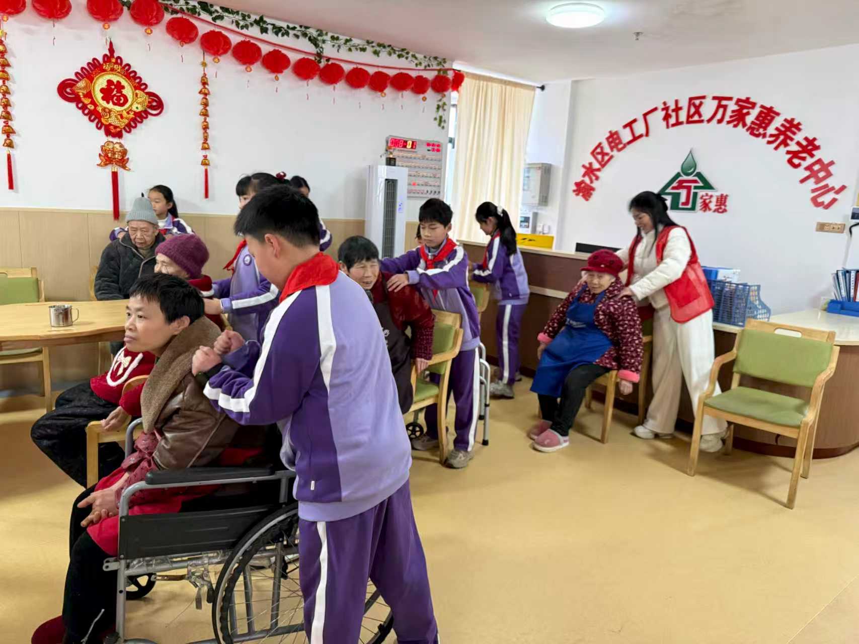 为弘扬雷锋精神,传承敬老美德,3月3日上午,江西省新余市渝水区袁河街道电工厂社区关工委联合市五一路小学师生走进万家惠养老中心开展“学雷锋·献爱心”志愿服务活动。在养老中心,师生们分工协作,有的拿起扫帚、抹布帮助老人打扫房间卫生,擦拭门窗桌椅;有的为老人捶背按摩,陪他们一起唱歌,现场欢声笑语不断。老人们看着孩子们忙碌的身影,脸上洋溢着幸福的笑容,纷纷竖起大拇指点赞。