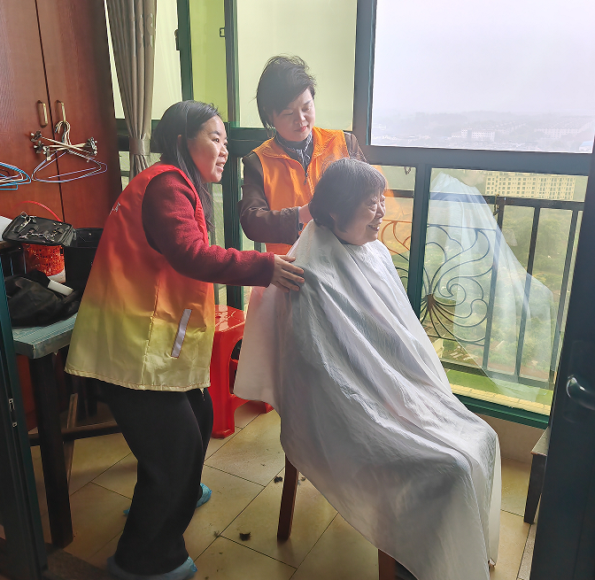 “年纪大了,腿脚不方便,去理发店还要排队。今天在社区里就能免费理发,这‘龙头’抬得真精神!”刚理完发的大爷看着镜子里的自己,脸上洋溢出满意的笑容,对志愿者们竖起了大拇指。