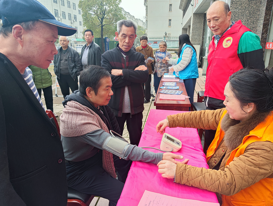 在活动的另一侧,医护人员正忙碌着为老人们进行免费体检。量血压、测血糖、听心肺……耐心细致地检查每一位老人的身体状况,并针对春季多发病提供了个性化的健康指导。
