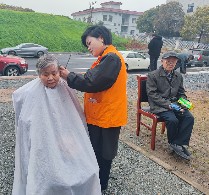 一大早,身穿红马甲的志愿者理发师们早早做好了准备。“大爷,您想剪短点还是稍微修修?”志愿者们一边亲切地与老人拉家常,一边挥舞着手中的剪刀。伴随着清脆的“咔嚓”声和电推子的“嗡嗡”声,老人们原本有些凌乱的白发被修剪得整整齐齐,面容也显得更加精神焕发。为了让行动不便的老人也能感受到传统文化的魅力,志愿者们还上门为其提供服务。