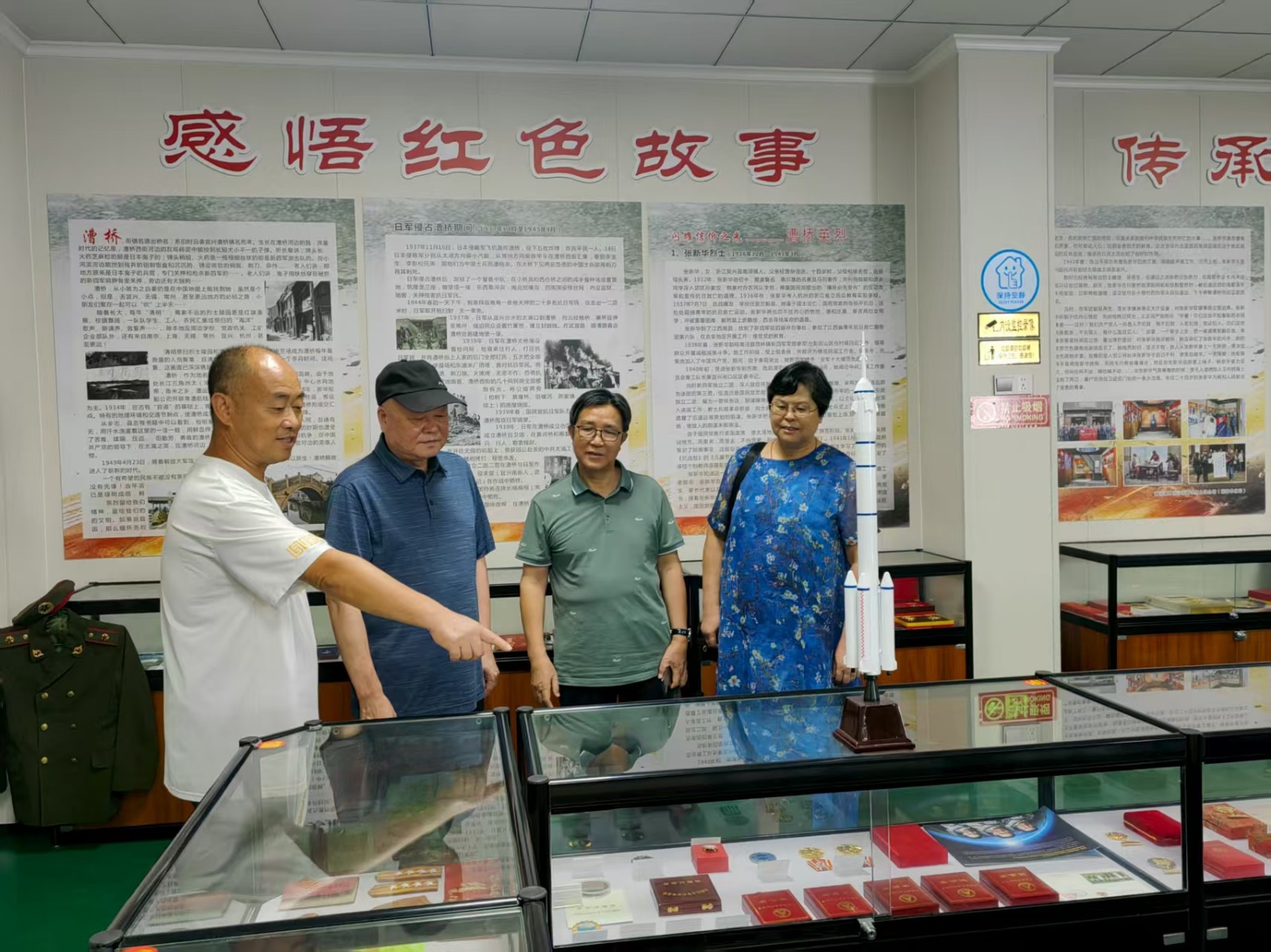 为了使前来参观的中小学生、青年党员更好地了解证章中的戎耀和历史,汤建平平时认真研读军史,发挥自己从事广告业的特长,撰写简介说明,辅之以历史文献、图文讲解等多种方式,使参观者一目了然,入心入脑。