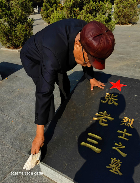 2025年9月30日,中国烈士纪念日。9时许,“吉林好人”“松原市老干部标兵”“松原市优秀‘五老”’标兵”前郭县关工委顾问87岁的宁布,携85岁老伴,带着准备好的水桶、麻布等用品,来到前郭烈士陵园,为长眠这里英烈陵墓细心恭敬地做起了保洁。